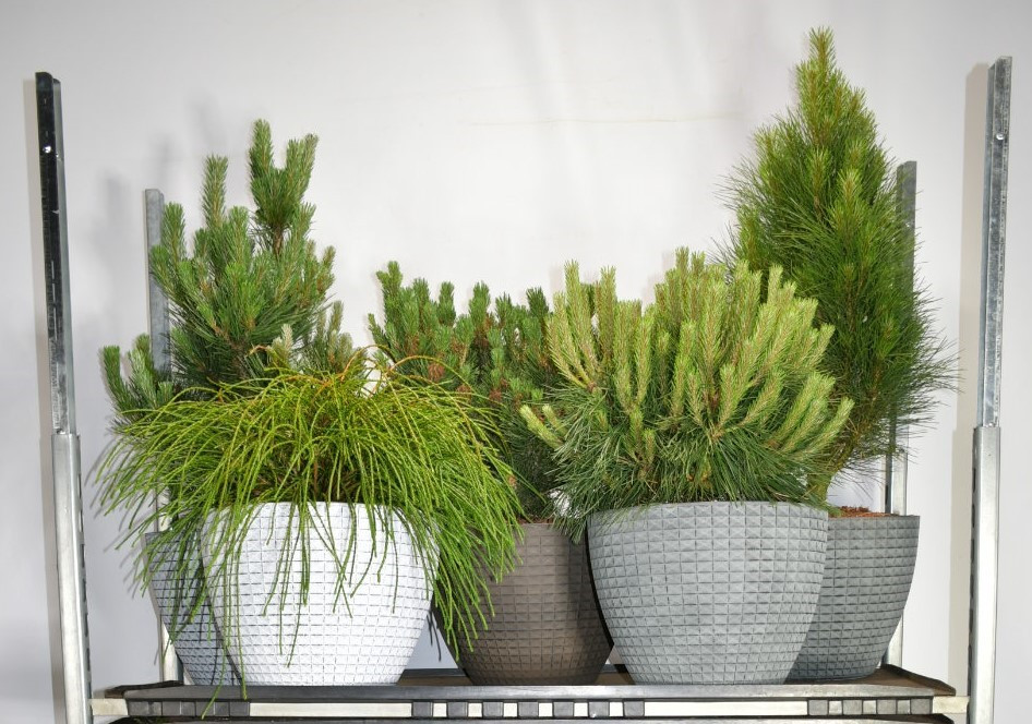 Coniferen gemengd in decopot