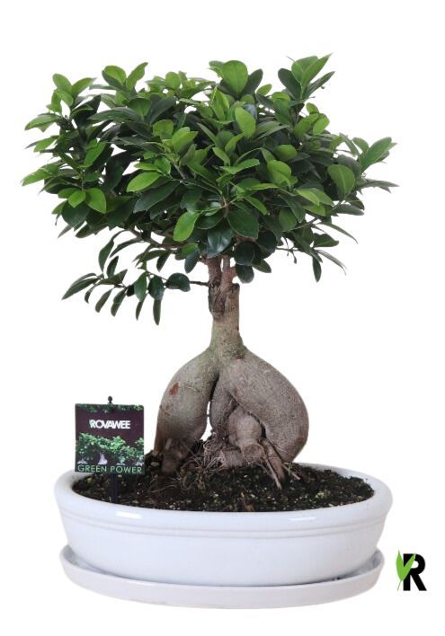Ficus micr. Ginseng in keramiek ovaal wit