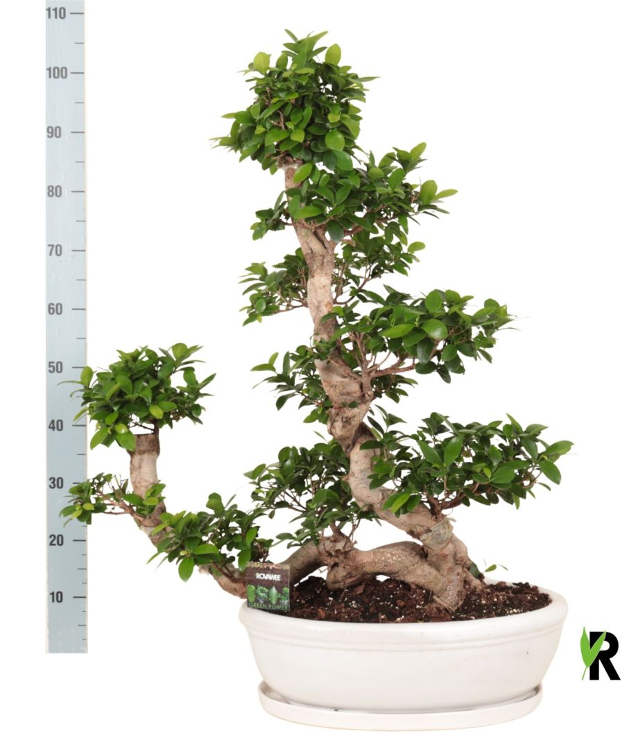 Ficus micr. Waterval in keramiek ovaal schaal met schotel wit