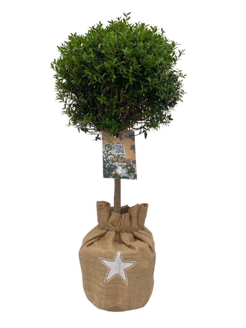 Myrtus op stam 17 cm – in jute Christmas potcover